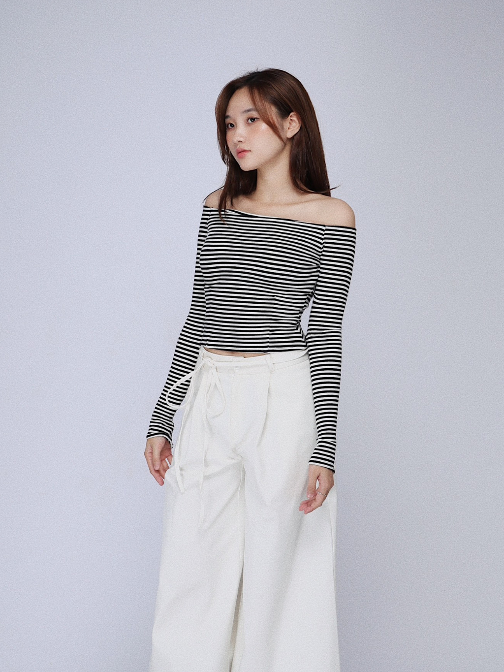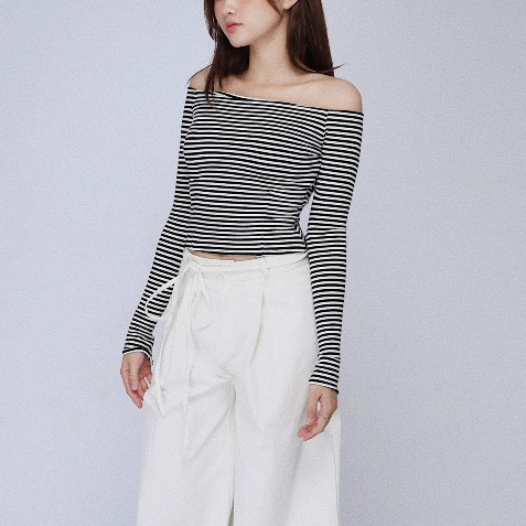 Seleen, Seleen, Áo trễ vai tay dài basic minimal ôm body chất liệu thun co dãn, WT0064